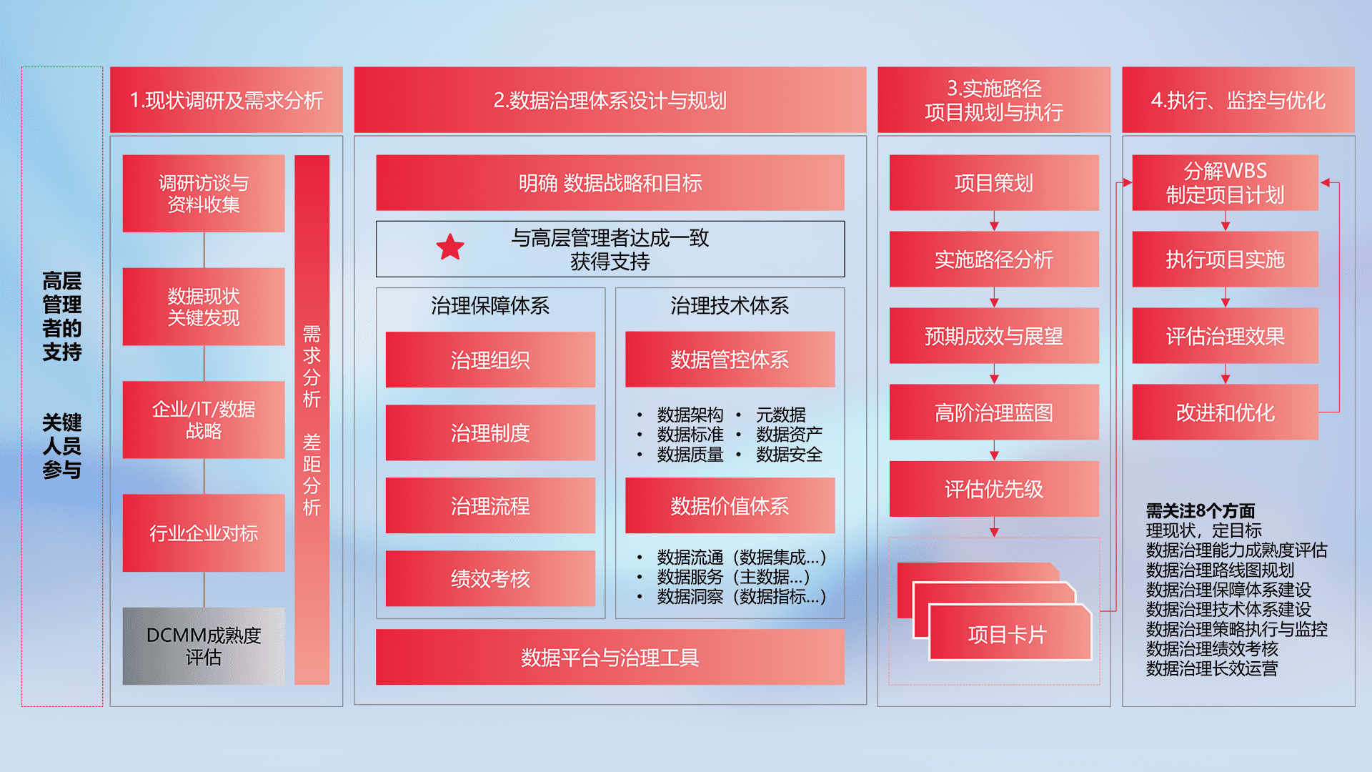 制定并执行统一的数据标准,,,,规范数据定义和格式,,消除冗余和不一致性,,,实现跨部门和跨系统的数据一致性,,为企业提供标准化的数据基础。。